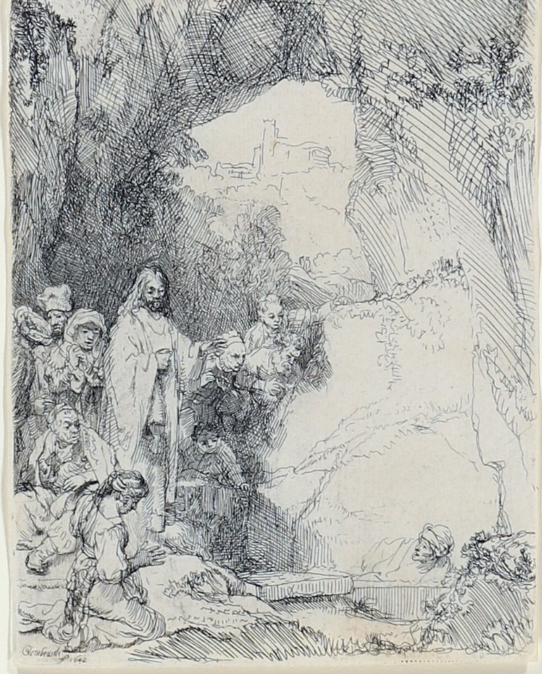 Ilustratie op het scherm, tekening van Rembrandt van Rijn.